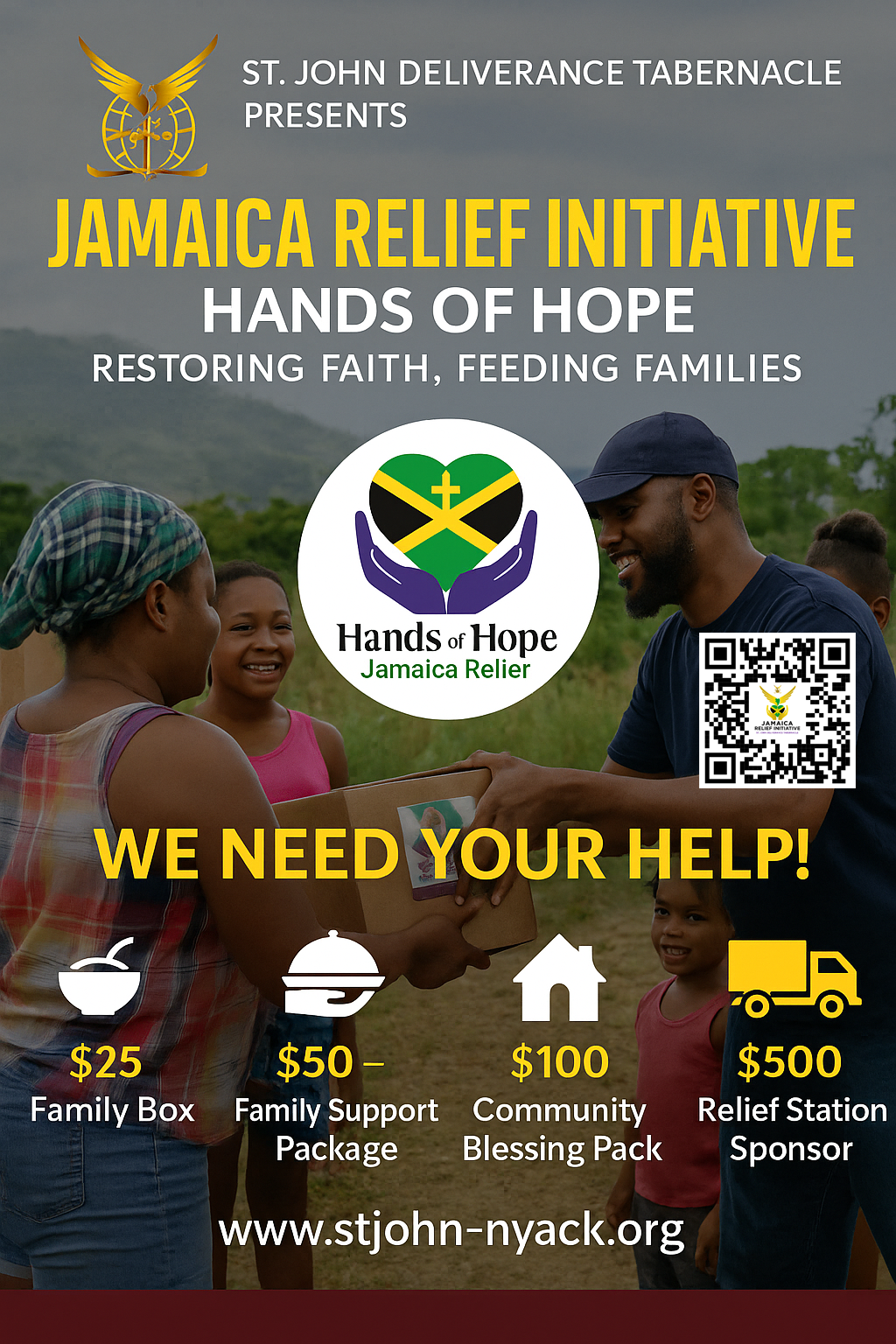 Through Kingdom Expansion Network with St. John Deliverance Tabernacle and all of our Network Churches, we are launching the Jamaica Relief Initiative – Hands of Hope, a compassionate mission dedicated to sending food, clean water, hygiene supplies, and comfort to families in crisis. We believe that when faith and generosity come together, miracles happen one box at a time.